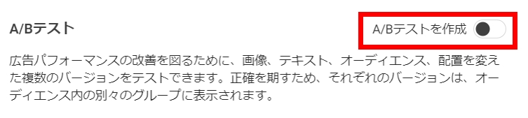 まずすべての設定を済ませ審査もパスし配信可能状態になってから、専用メニューで A/B テストを設定する方が管理しやすいです。