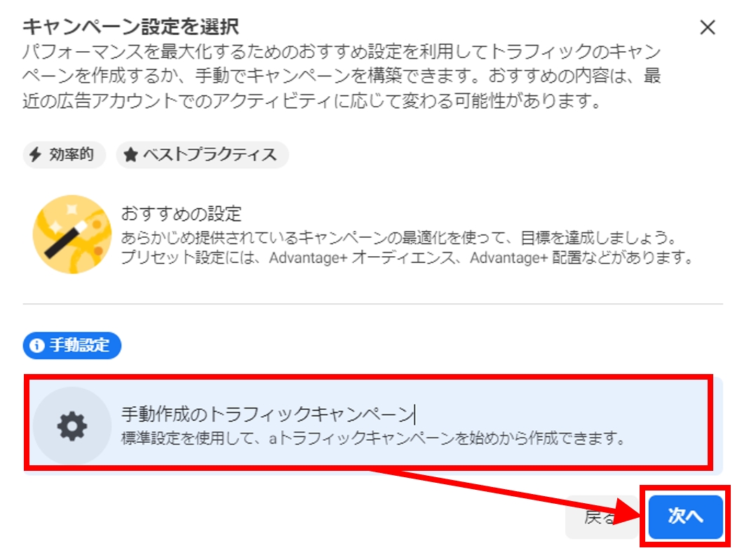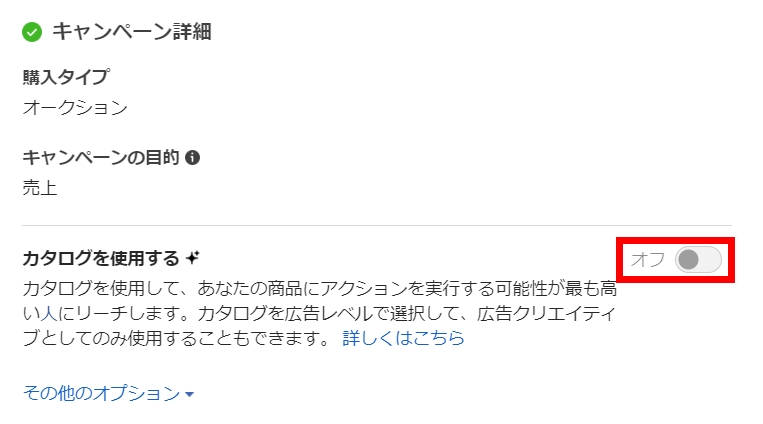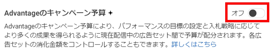 すべてお任せで配信する場合はオンにしても良いですが、この講座では詳細に設定してPDCAを回して広告パフォーマンスを高めることを目的としているのでオフにしてください。