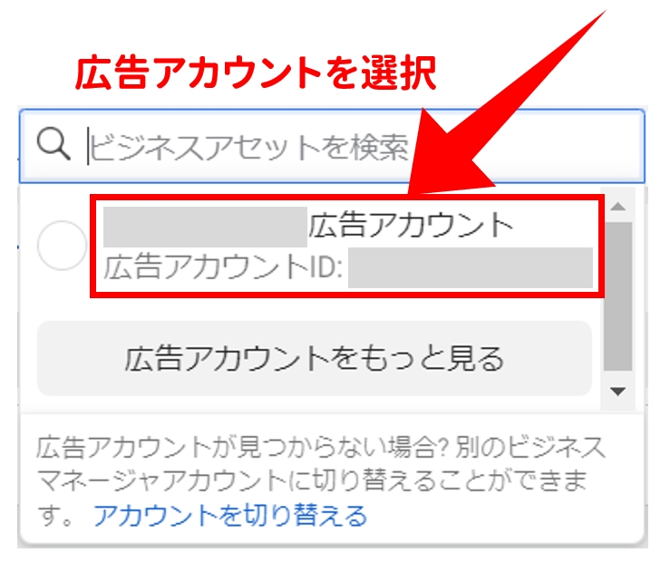 他のアカウントになっている場合は、広告アカウントに変更