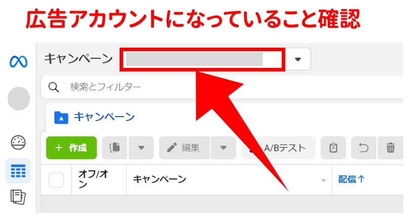 個人アカウントでも広告を出すことができるので、間違わないように注意してください。個人アカウントで進めてしまうとせっかく設定したピクセルなどが使えません。
