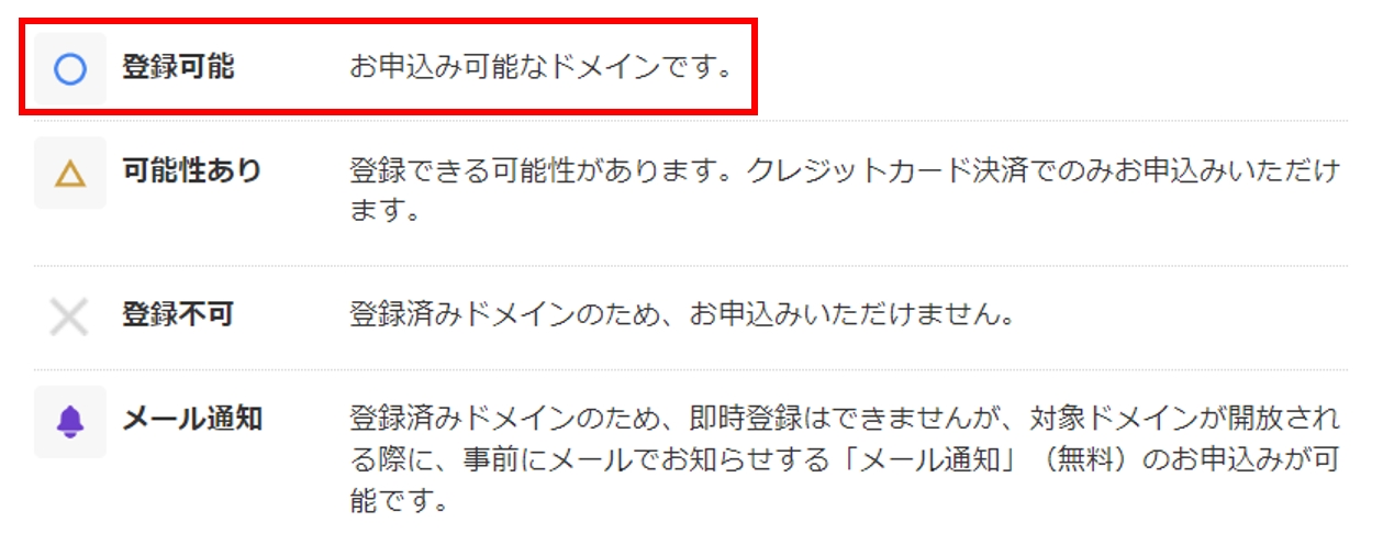 ドメインの取得手続きの途中で、使えないことがわかる場合もあります。