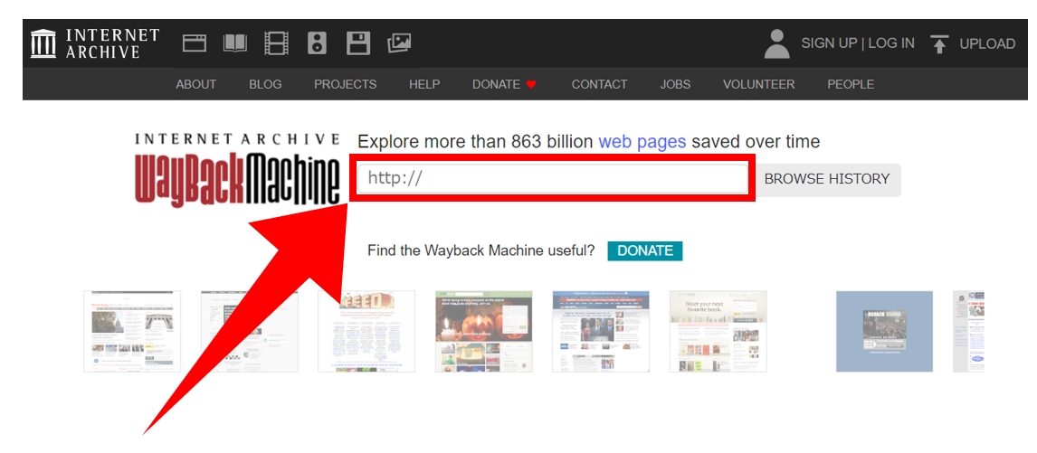「WayBackMachine」のサイトへ下記のリンクからアクセス