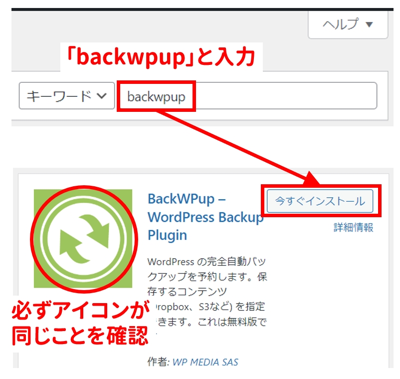 backwpup 」→「今すぐインストール