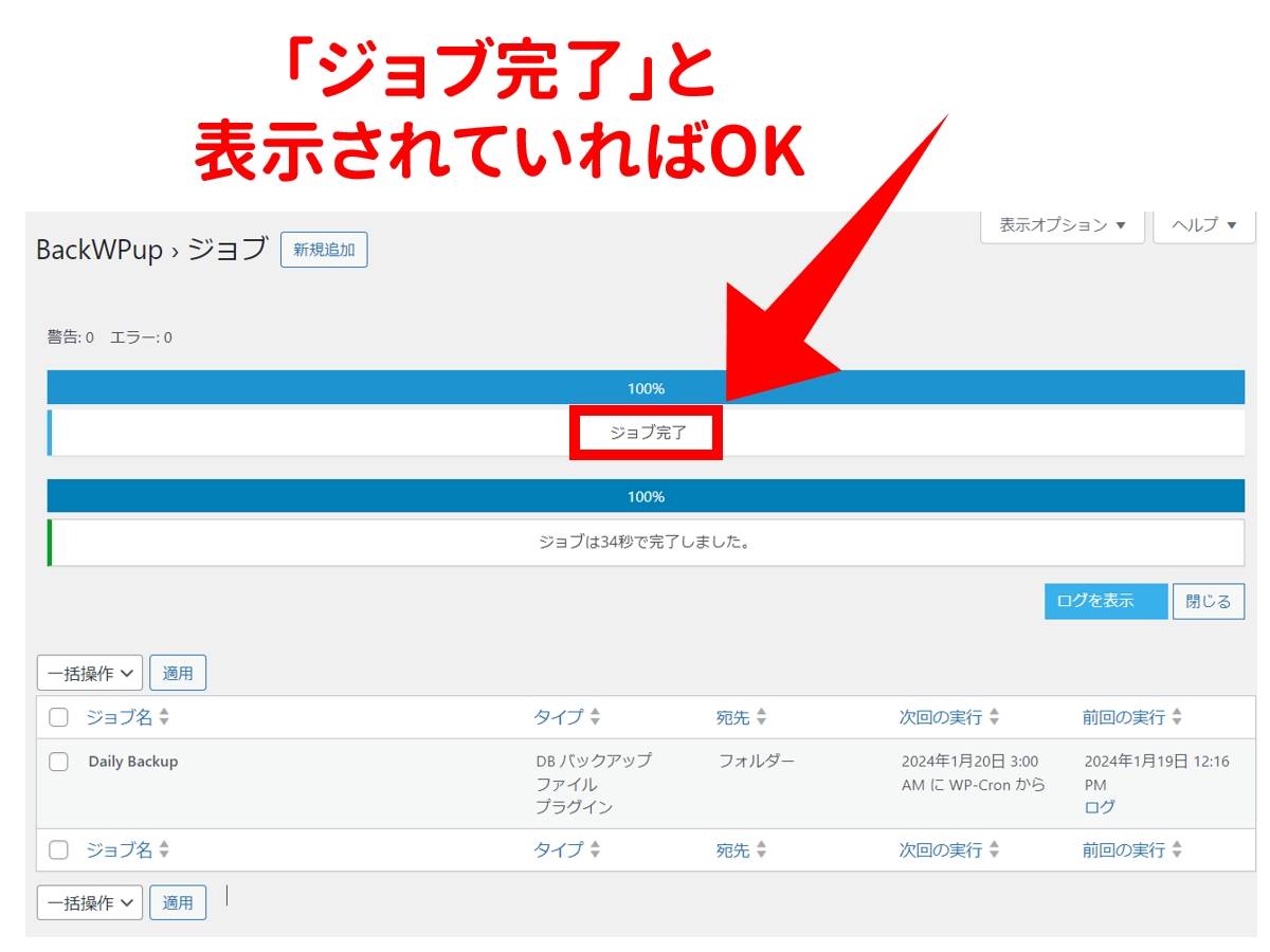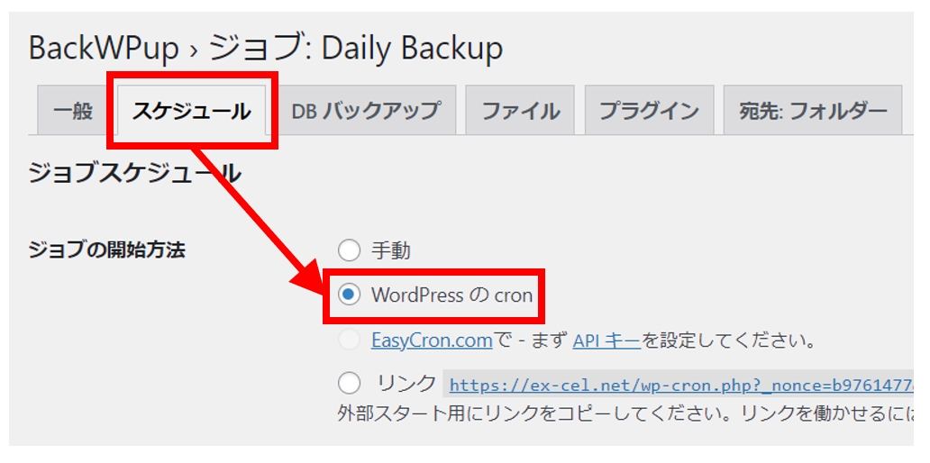 BackWPup 」→「ジョブ