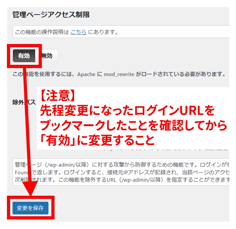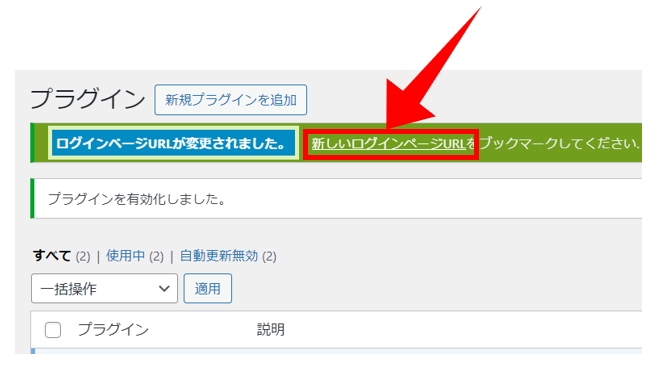 このURLを知っている人しかあなたのサイトにログインできなくなります。セキュリティ的により強固になる反面、この URL を忘れるとかなり面倒な事態になります。