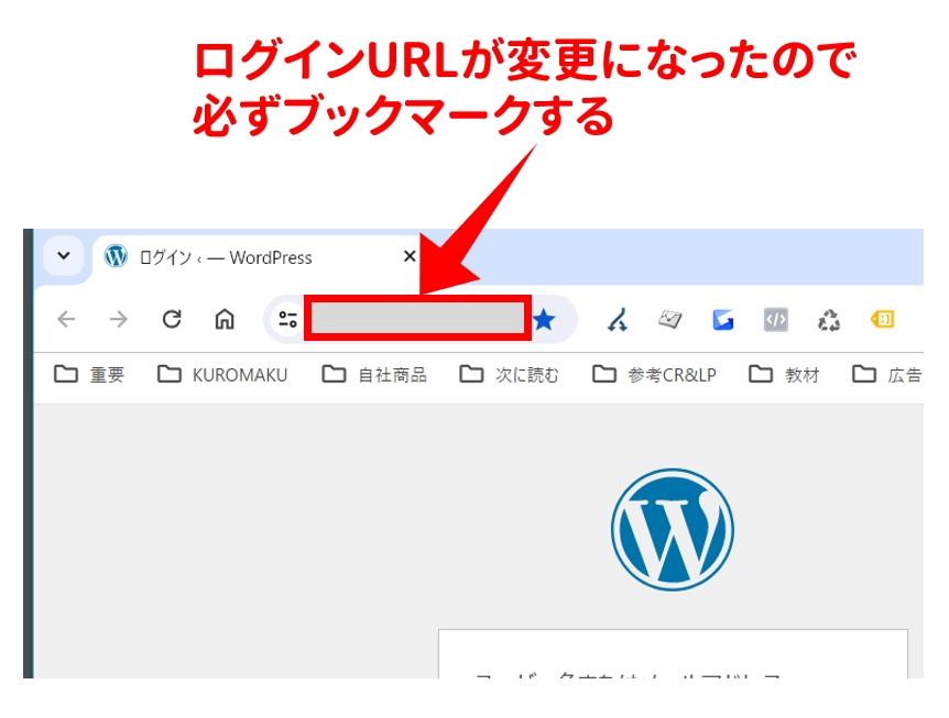この URL が 次回からのWordPressへのログインページになります。必ずブックマークしてください。