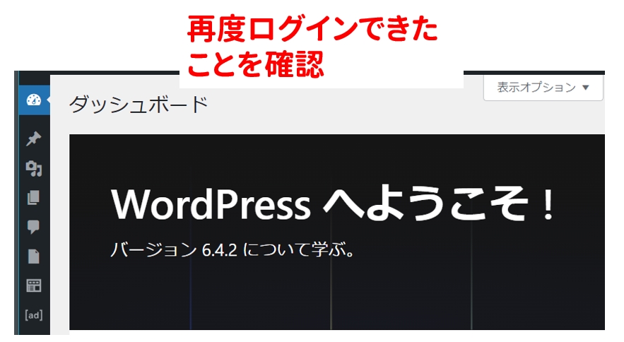 再度ログインできることを確認